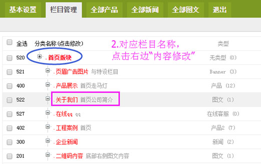 網(wǎng)站欄目管理
